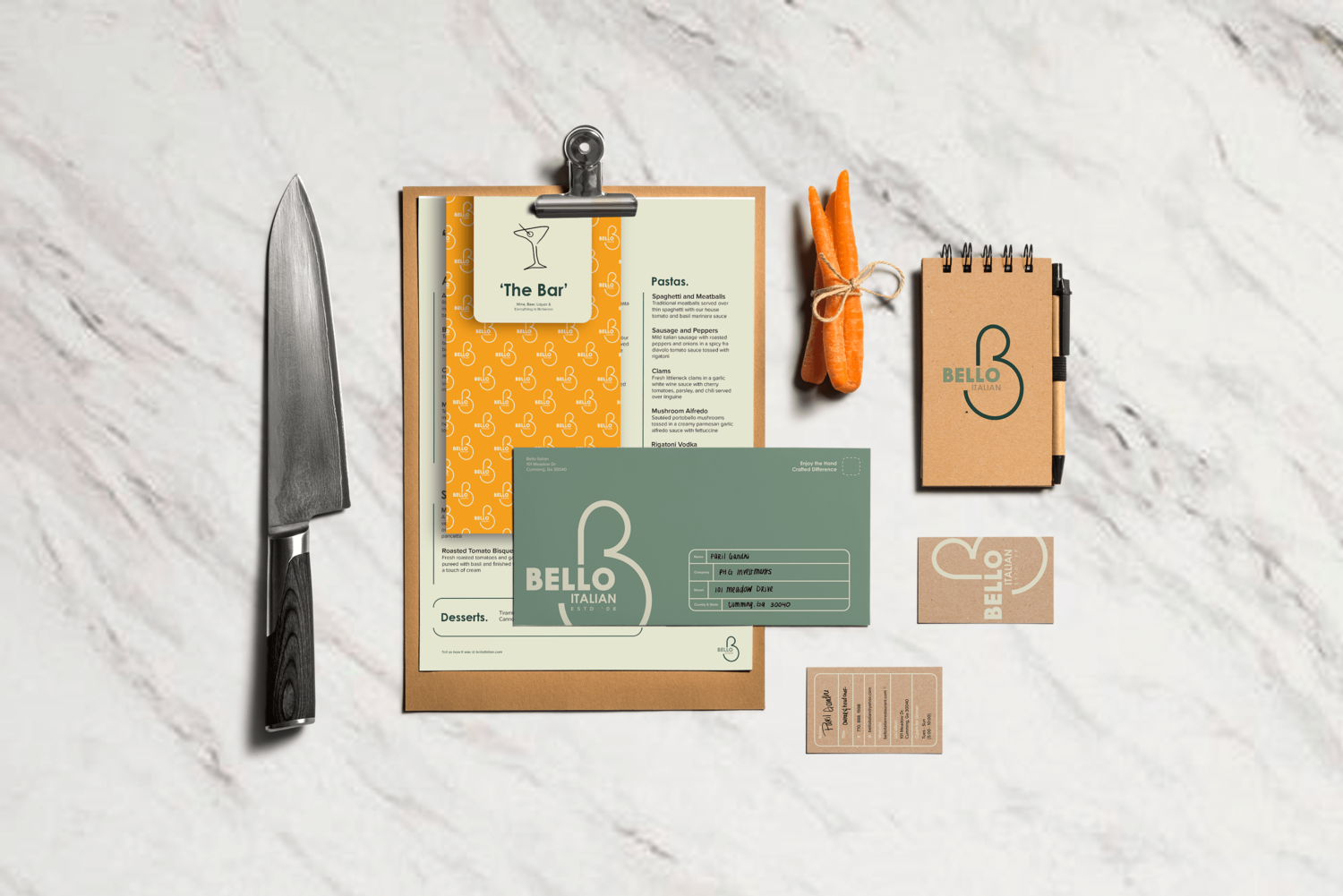 Bello Italian is a family-owned restaurant tucked in downtown Cumming, GA. By the time they hit their 10-year anniversary, the town around them had totally transformed, but the brand hadn’t. They’d never devoted time to marketing. No voice, no visual system, just good food and loyal regulars.